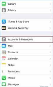 2. In the SETTINGS SCREEN click on ACCOUNTS & PASSWORDS