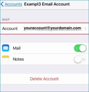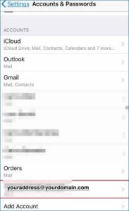 3. You will see a list of all of the email accounts on your phone or iPad. Click on the email account that you need to update the server settings for.