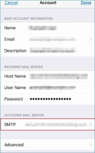 3. You will see a list of OUTGOING SERVERS that have been configured on your iPhone or iPad.